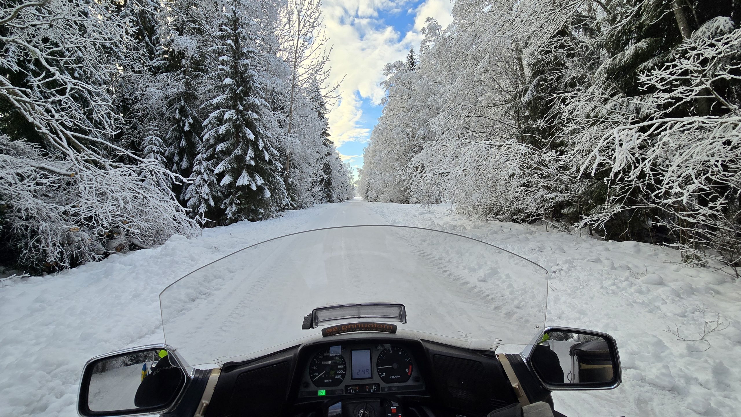 Vad är det då som gäller vid vinterkörning och en sådan här resa? Vi kommer att färdas på vägar med underlag av både is, snö och ren asfalt det innebär att jag får kompromissa med däck och dubb. Det kan vara svårt att köra med långdubb (typ endurodubb 4 - 8 mm) då det inte går att veta om det finns is- och snöunderlag hela tiden. Det kan bli långa sträckor med ren asfalt beroende på förutsättningar och väder. Den bästa kompromissen är däck med bildubb (max 2 mm utstick) kompletterat med skidor eller sidvagn. Med en sådan utrustning är jag redo för fina dagar på alla underlag men också om det skulle bli besvärligt med mycket nysnö, rejält spårigt underlag eller ren asfalt. Vi kommer att så långt det är möjligt välja det mindre vägnätet, ofta länsvägar med tresiffrigt nummer, men vi kommer kanske att behöva köra en del sträckor i riksvägnätet så det gäller att vara förberedd för alla underlag. Vädret kan också göra att vi måste planera om och ta omvägar för att nå dit vi ska och då kan vi även behöva nyttja riks- och Europavägnätet